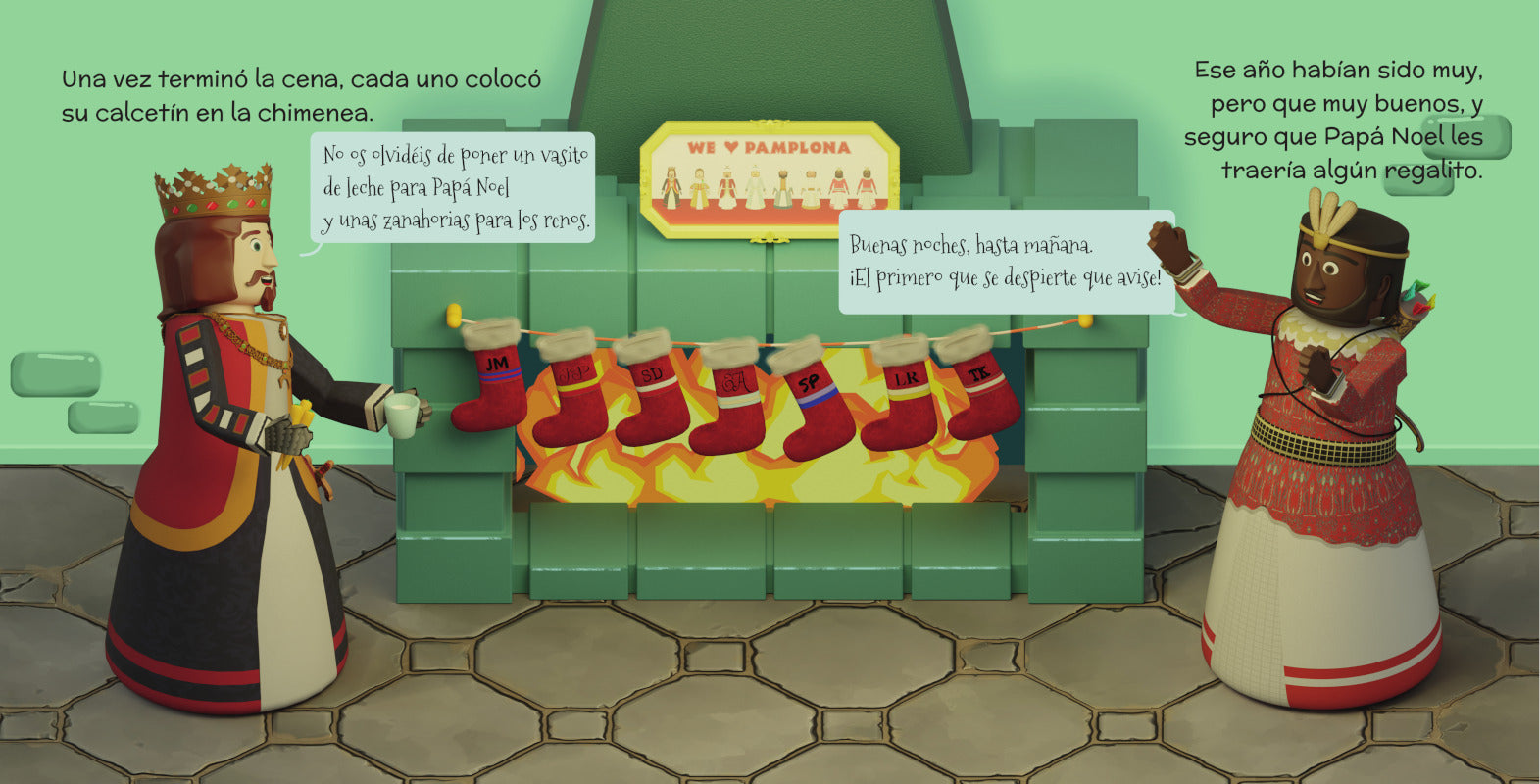 Descubre en este cuento interactivo la aventura que viven los gigantes de Pamplona una Nochebuena mientras esperan a Papá Noel. Todo parece normal hasta que empiezan a oir unos ruidos en plena noche. Coge aire navideño y respira hondo porque para descubrir esta historia tendrás que leer, soplar, disimular, agitar, reir, buscar ¡e incluso cantar!